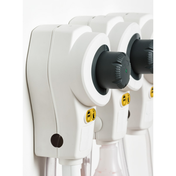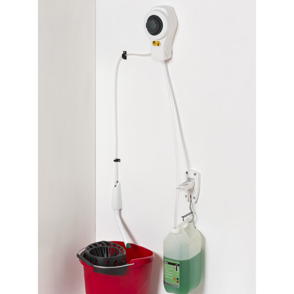 Puede extraer producto químico desde contenedores de cualquier tamaño. Brightwell ofrece un soporte para colgar contenedores de hasta 10 litros, o un armario multiuso para productos químicos donde podrá mantenerlos cerrados.
